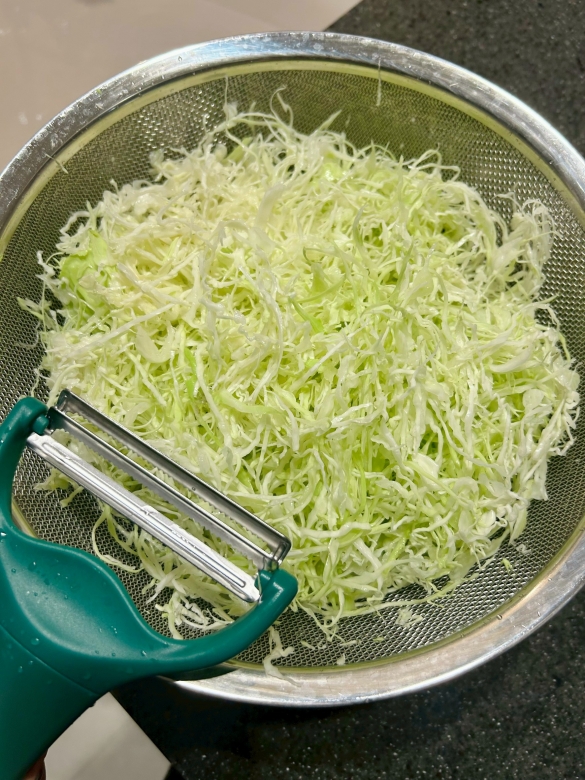 気付いたら毎回半玉ぐらい削ってしまい、あっという間に大きなボウルいっぱいの千切りキャベツができあがります。